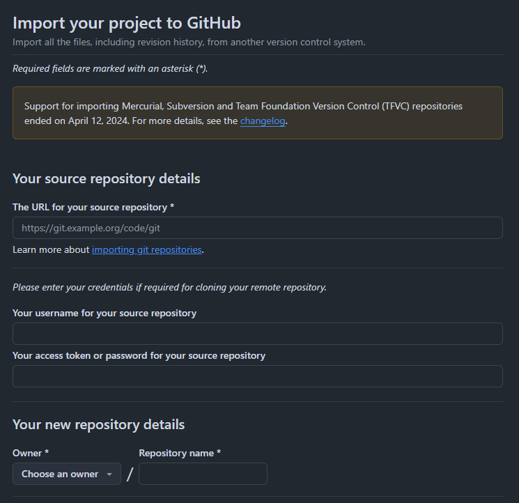 Usually meant for importing from a different version control system (e.g., GitLab)