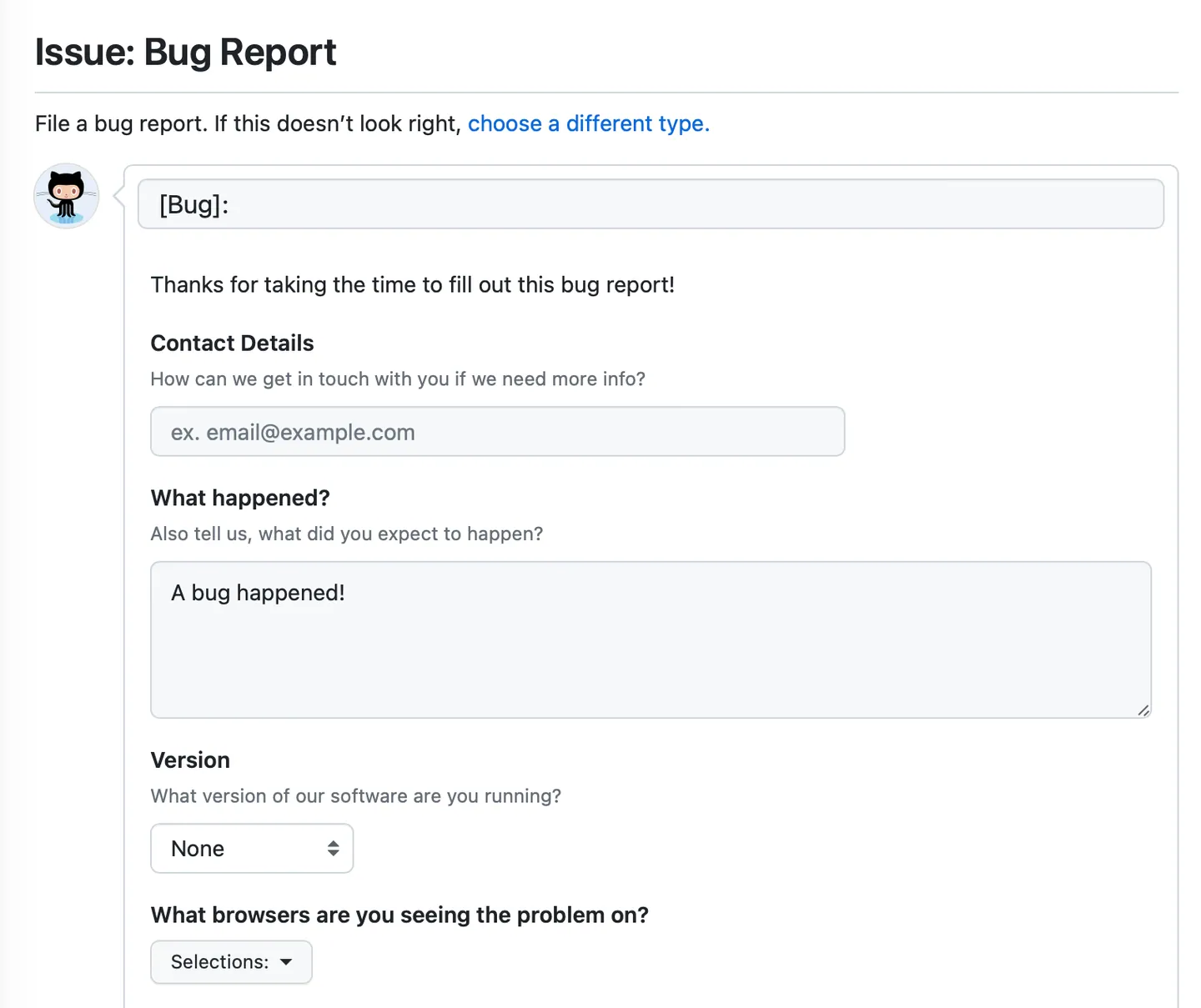 Different kinds of repositories need different kinds of issue templates.